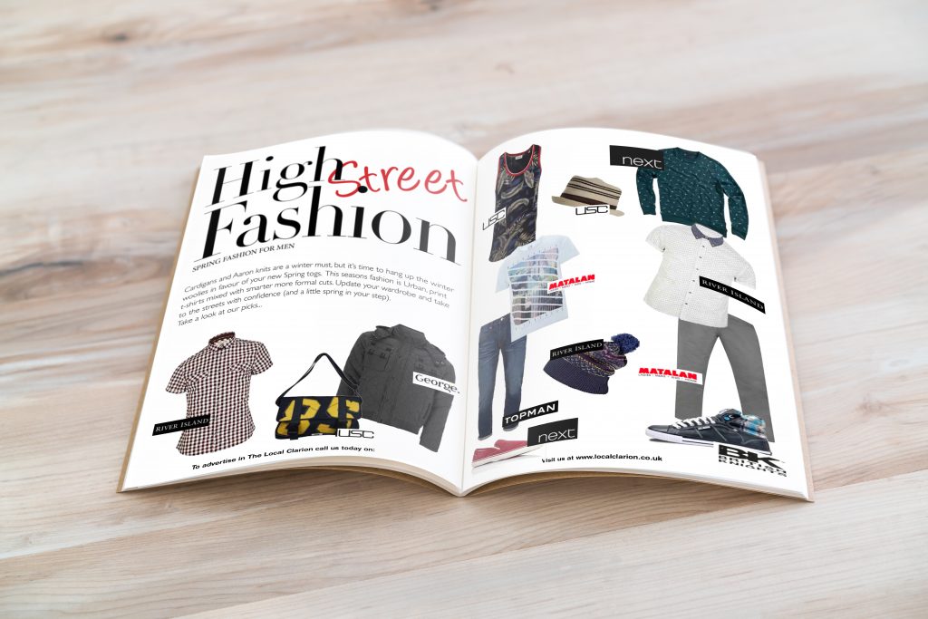 Layout created for a local advertising magazine, highlighting fashion items available in local shops.