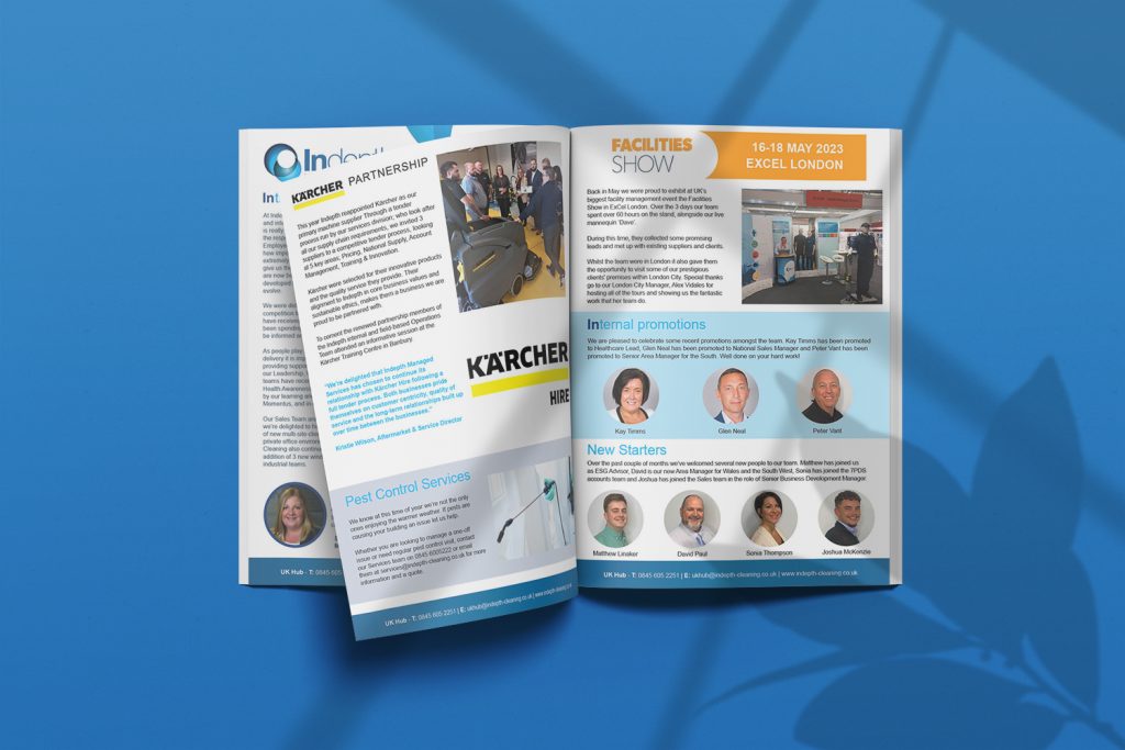 In-depth required a new look to fit with their current branding for a sales brochure. The look of the brochure was refreshed, using a dynamic swash element.